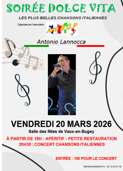 L'association AMIBOP vous propose une soirée « Dolce Vita » avec le chanteur italien Antonio Lannoca.