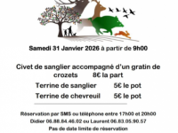 La société communale de chass et de pêche vous propose une vente à emporter avec buvette